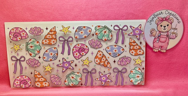 colorful shells and purple bows