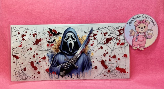 ghost face with spider webs and blood