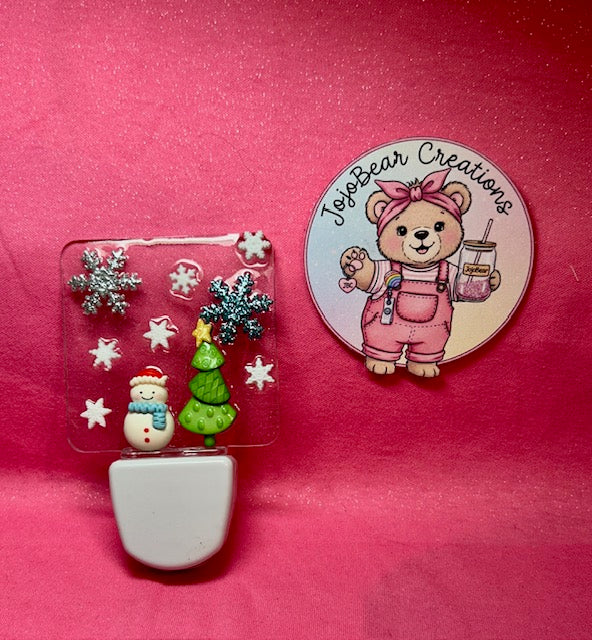 Brighten your holiday nights with this hand-crafted snowman night light. Its warm glow creates a cozy, festive atmosphere perfect for holiday magic. Delightfully playful, this charming snowman brings cheerful light to any room, making it a perfect companion for Christmas evenings.
