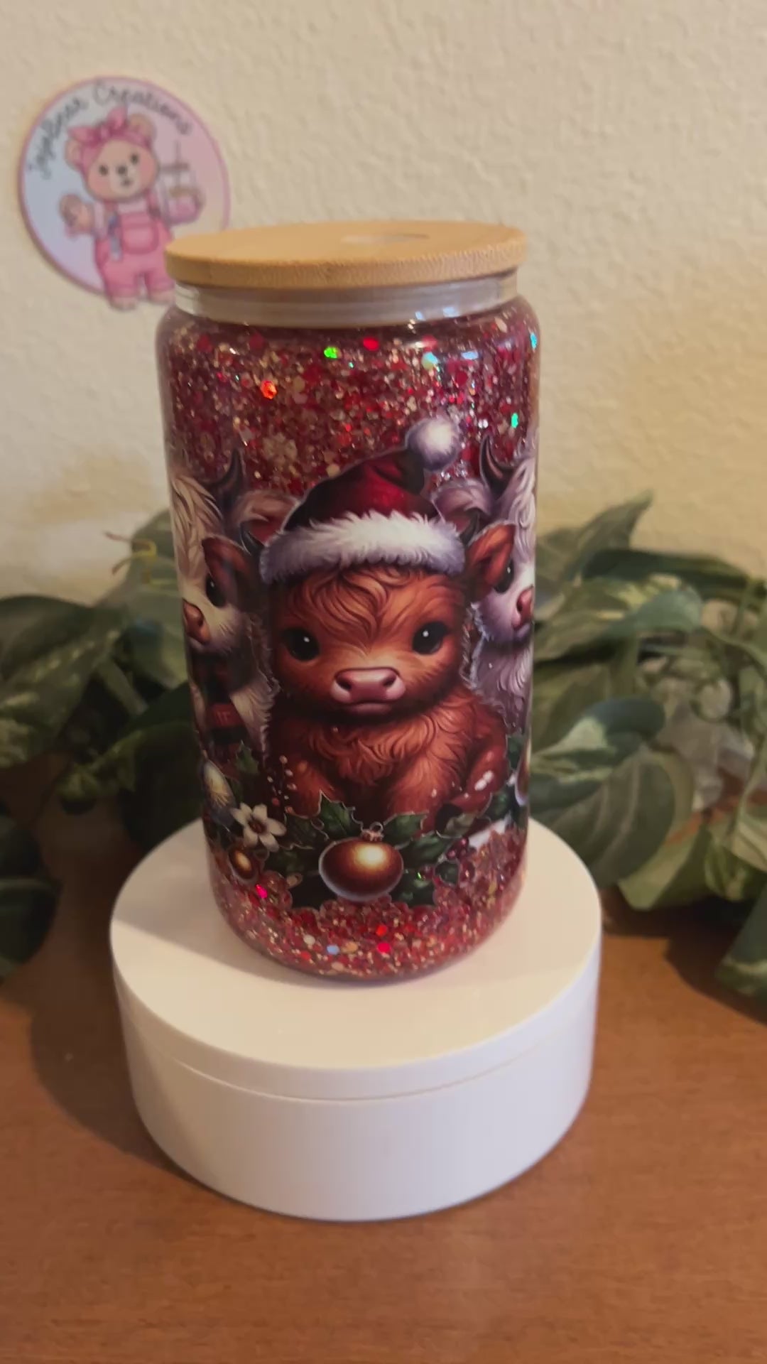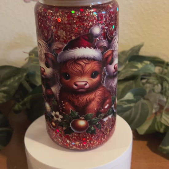 Ready to Ship Christmas Cow Glass Tumbler with Handle