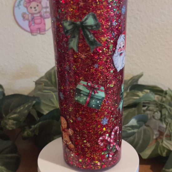 Celebrate the holiday spirit with this discounted Christmas snow globe tumbler, sparkling with festive red and gold glitter.