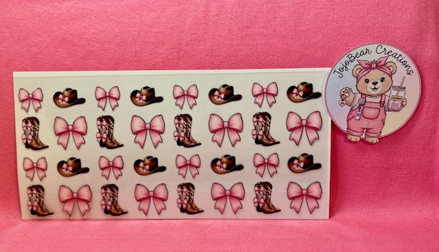 Boots, hats, pink bows